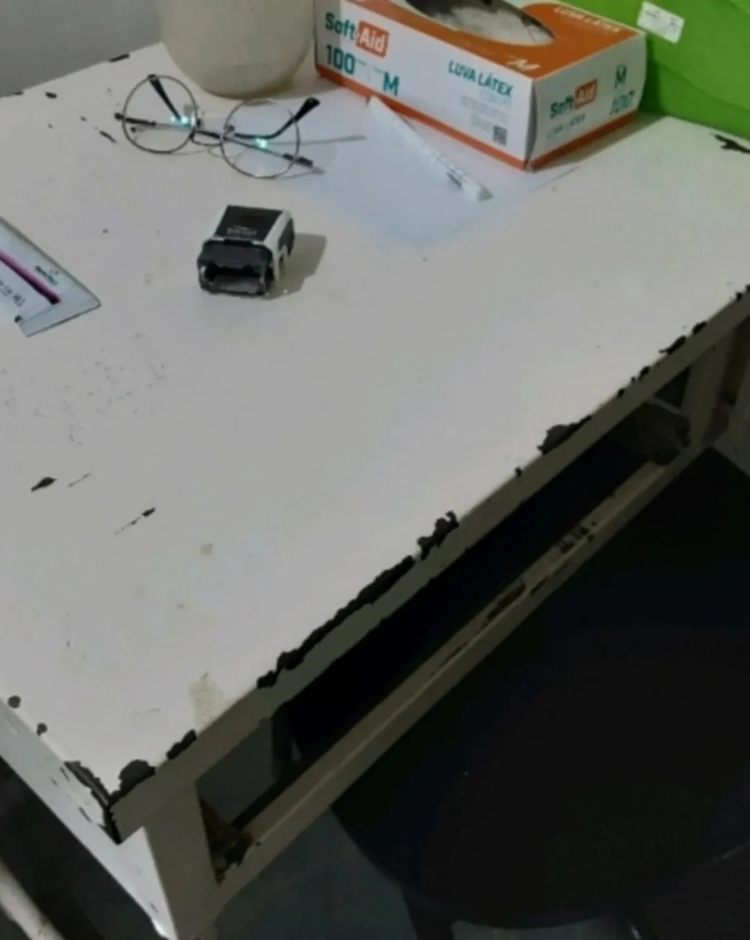 O relatório apontou ainda que a cadeira odontológica encontrava-se em péssimas condições de uso, com estrutura enferrujada, pedal de acionamento com defeito, cuspideira trincada e reservatório improvisado com garrafa pet. Também foram observadas falhas graves em itens de biossegurança, como instrumentais sem registro da data de esterilização e avental plumbífero sem proteção para a tireoide.