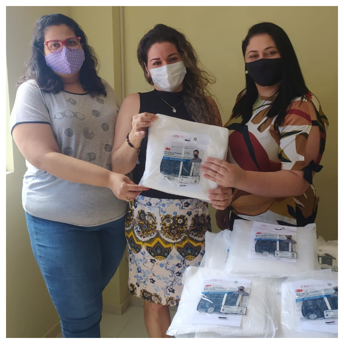 30 kits de EPIs chegaram ao município agora em julho e foram entregues à Coordenadora de Saúde Bucal, Jordana Oliveira, e àSecretária Municipal de Saúde, Roberta Falcão, pela Delegada do CRO-PE na Região, Denise Diniz.